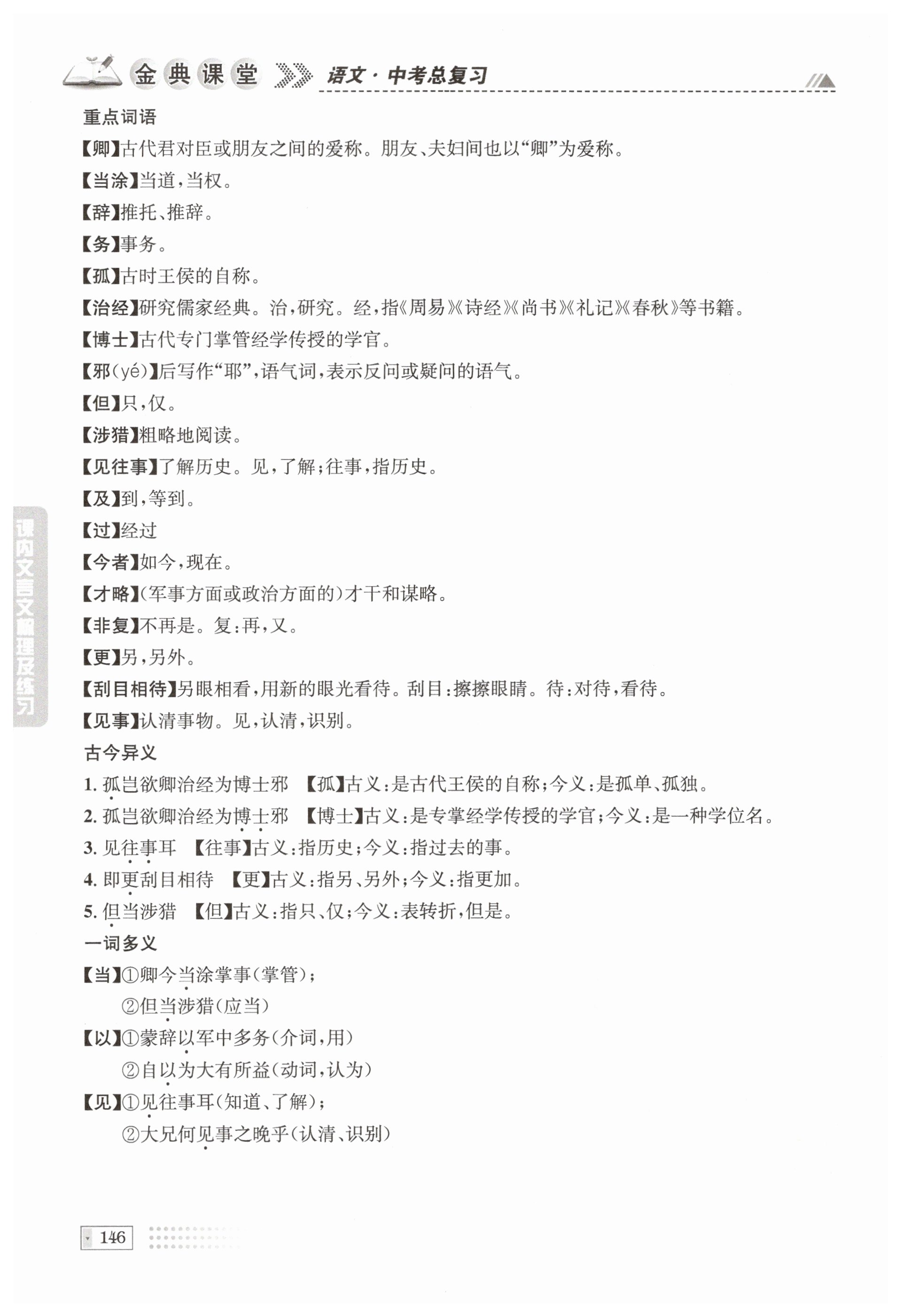 注:目前有些书本章节名称可能整理的还不是很完善,但都是按照顺序排列的,请同学们按照顺序仔细查找。练习册 2025年名校金典课堂语文中考成都专版 答案主要是用来给同学们做完题方便对答案用的,请勿直接抄袭。