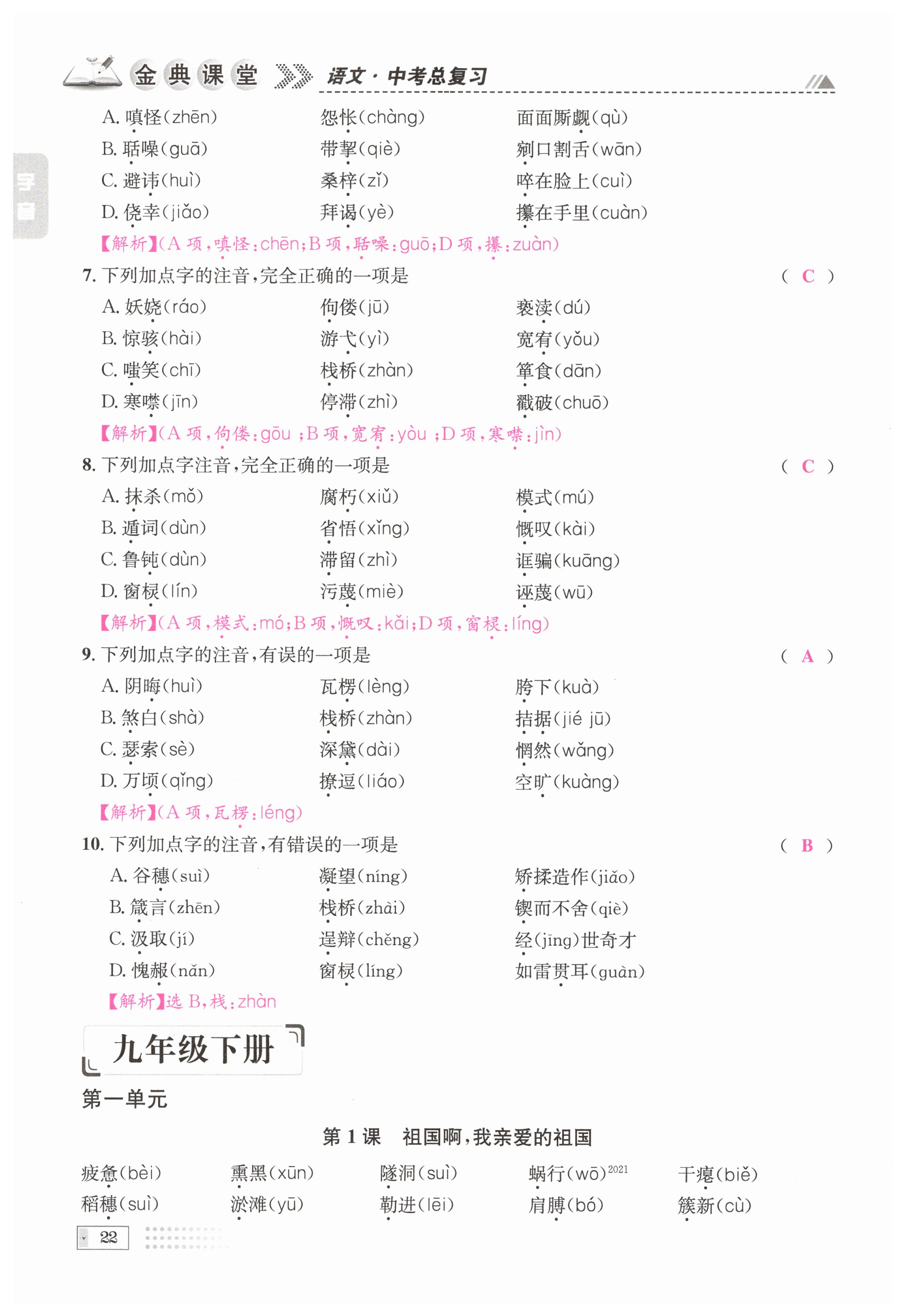 注:目前有些书本章节名称可能整理的还不是很完善,但都是按照顺序排列的,请同学们按照顺序仔细查找。练习册 2025年名校金典课堂语文中考成都专版 答案主要是用来给同学们做完题方便对答案用的,请勿直接抄袭。