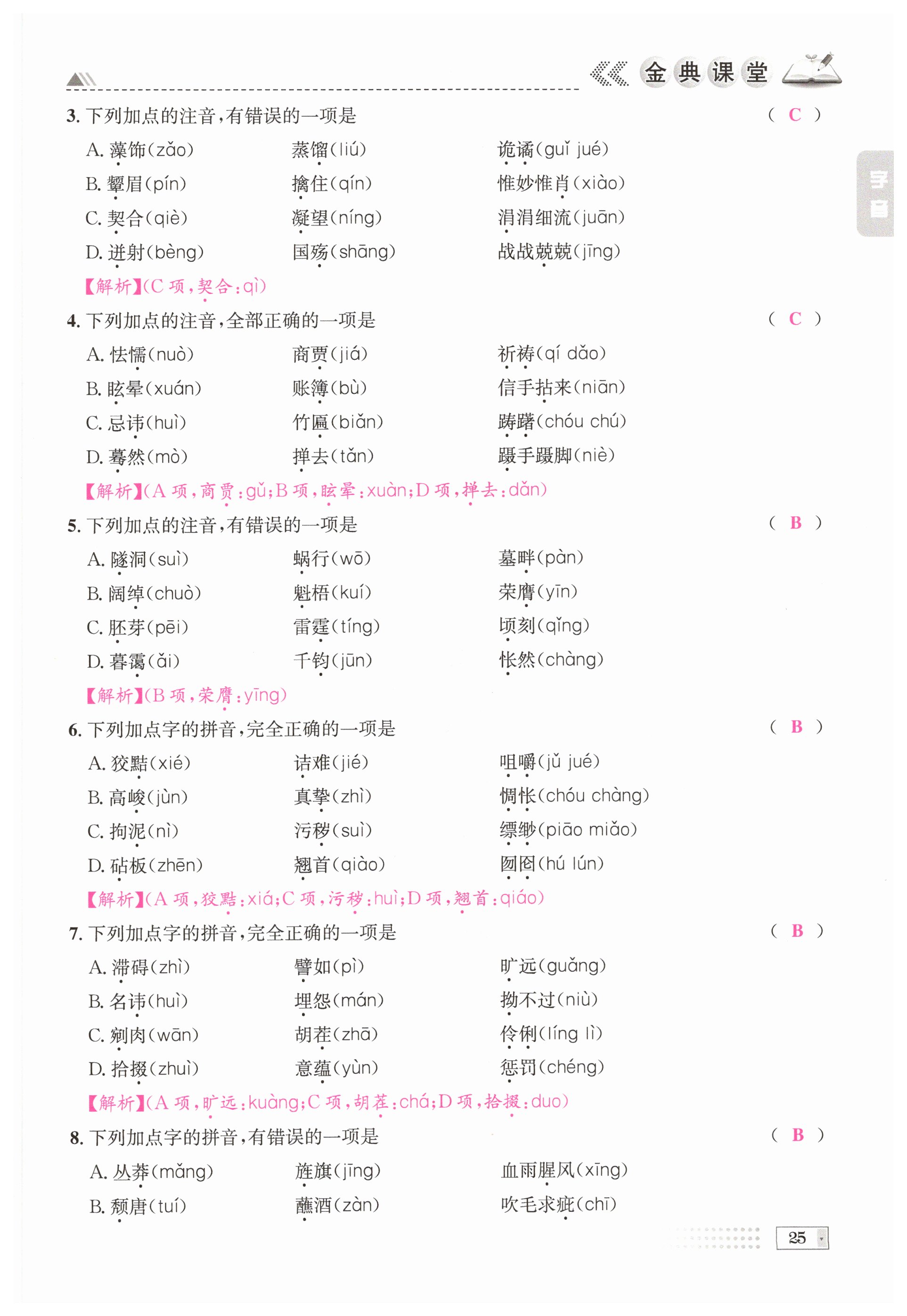注:目前有些书本章节名称可能整理的还不是很完善,但都是按照顺序排列的,请同学们按照顺序仔细查找。练习册 2025年名校金典课堂语文中考成都专版 答案主要是用来给同学们做完题方便对答案用的,请勿直接抄袭。