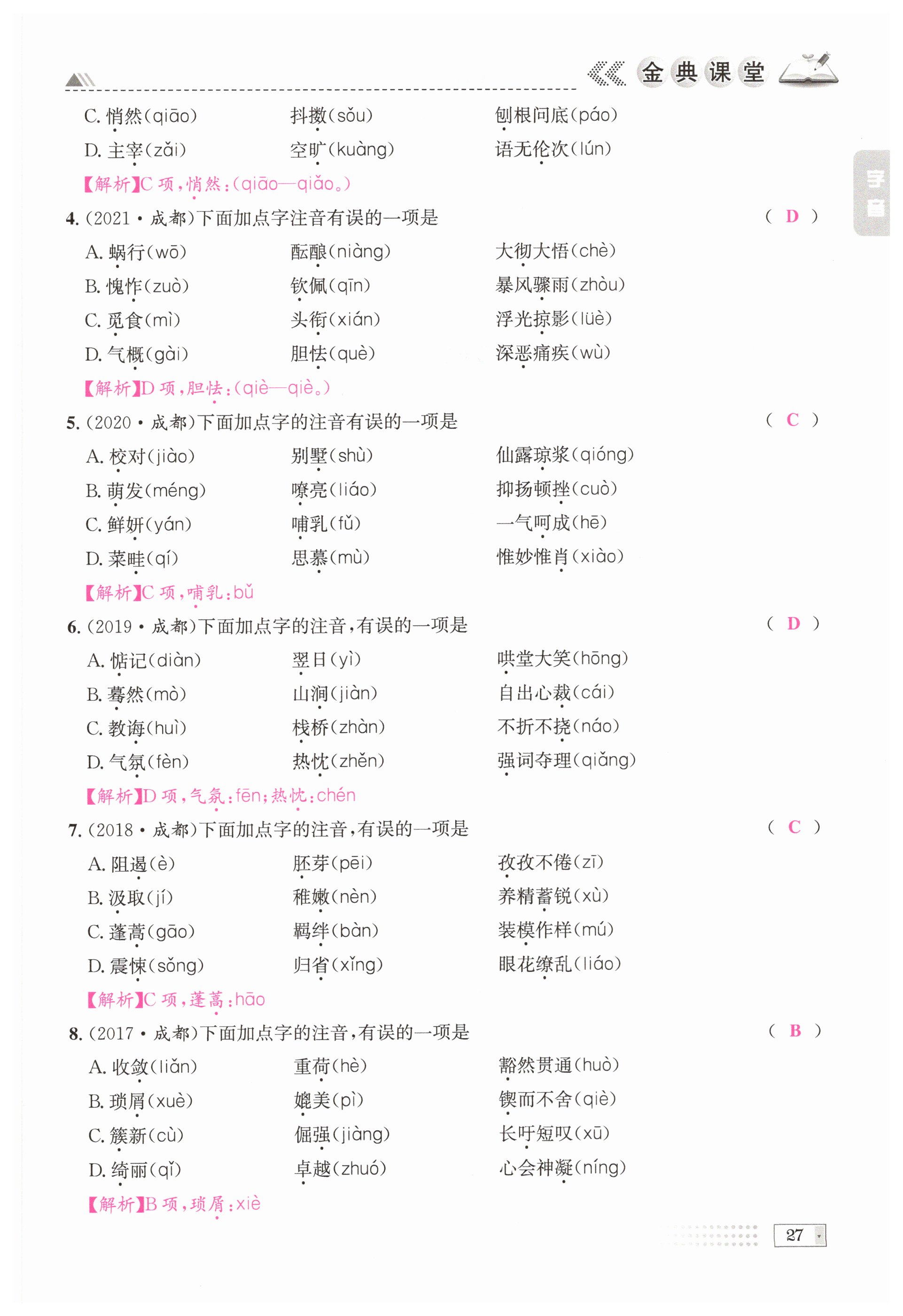 注:目前有些书本章节名称可能整理的还不是很完善,但都是按照顺序排列的,请同学们按照顺序仔细查找。练习册 2025年名校金典课堂语文中考成都专版 答案主要是用来给同学们做完题方便对答案用的,请勿直接抄袭。