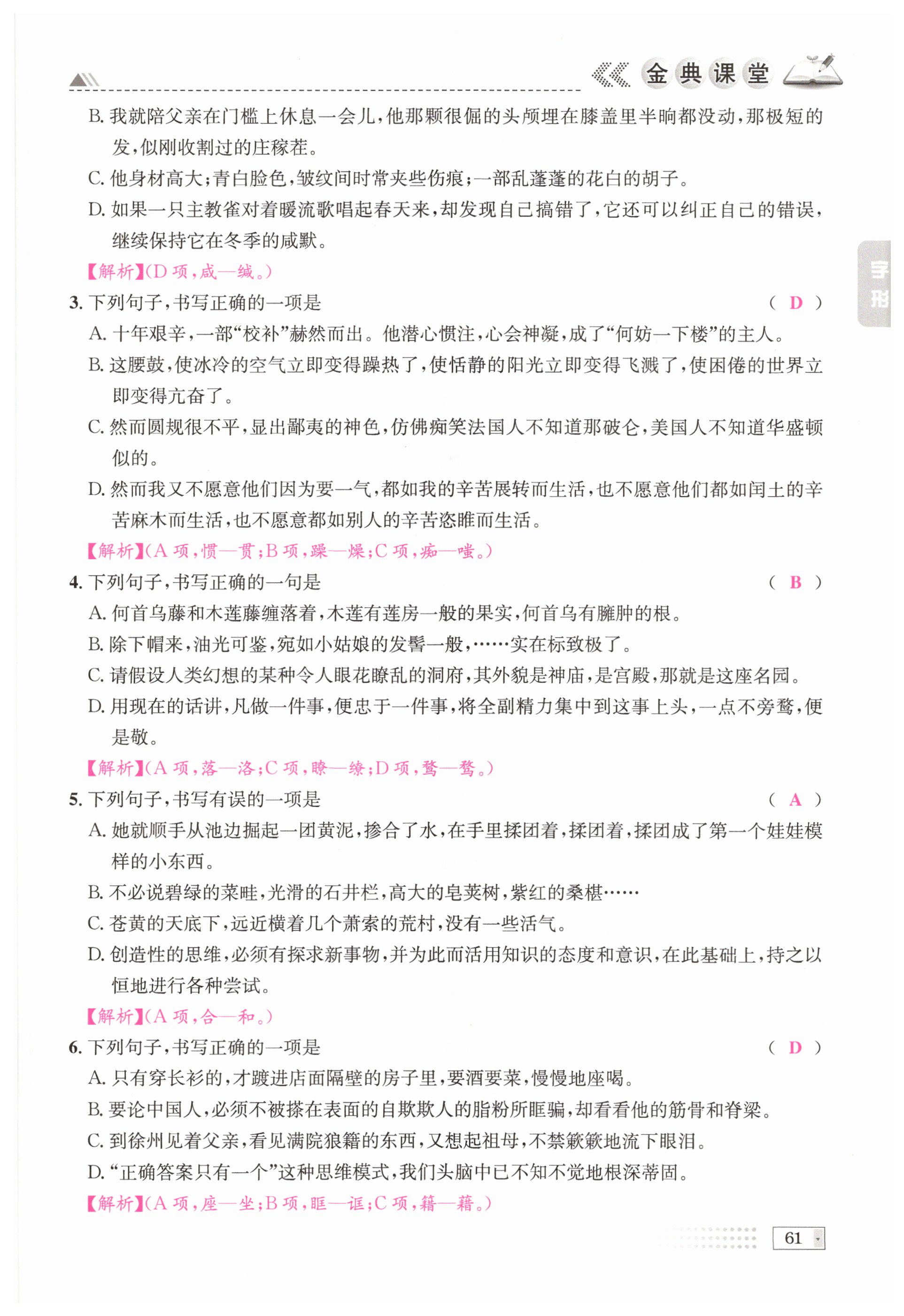 注:目前有些书本章节名称可能整理的还不是很完善,但都是按照顺序排列的,请同学们按照顺序仔细查找。练习册 2025年名校金典课堂语文中考成都专版 答案主要是用来给同学们做完题方便对答案用的,请勿直接抄袭。