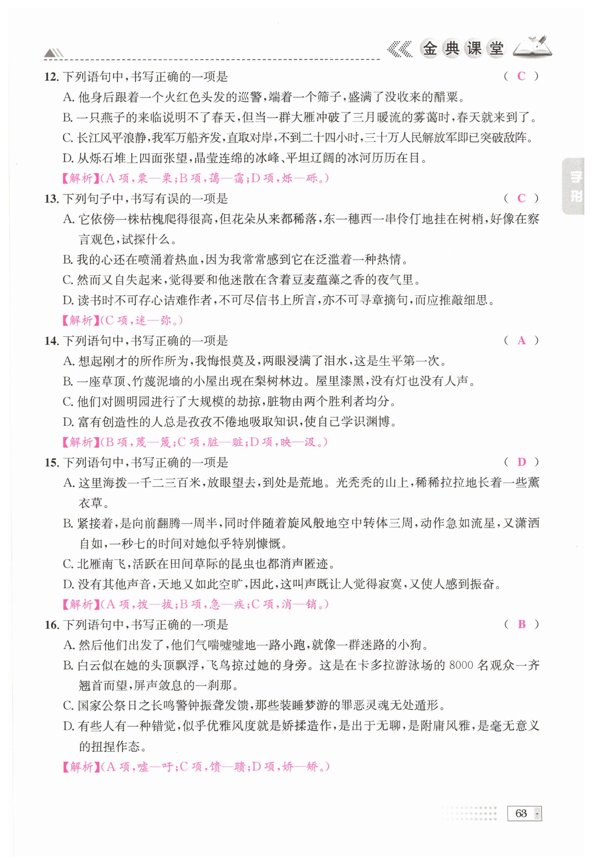 注:目前有些书本章节名称可能整理的还不是很完善,但都是按照顺序排列的,请同学们按照顺序仔细查找。练习册 2025年名校金典课堂语文中考成都专版 答案主要是用来给同学们做完题方便对答案用的,请勿直接抄袭。