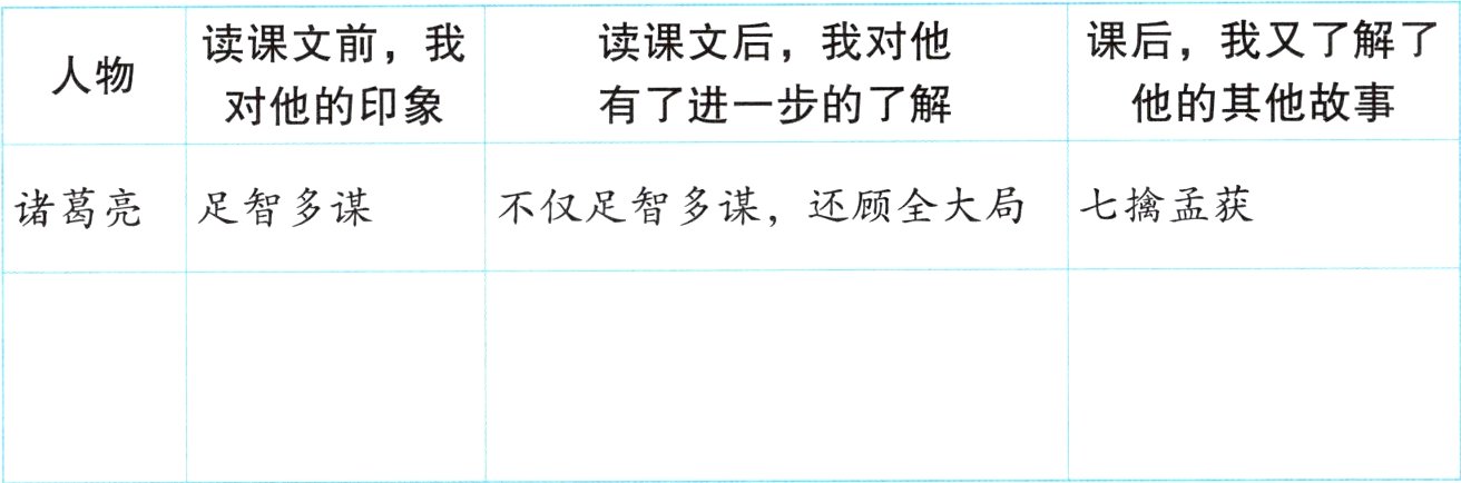 |人物|读课文前,我对他的印象|读课文后,我对他有了进一步的了解|课后,我又了解了他的其他故事|