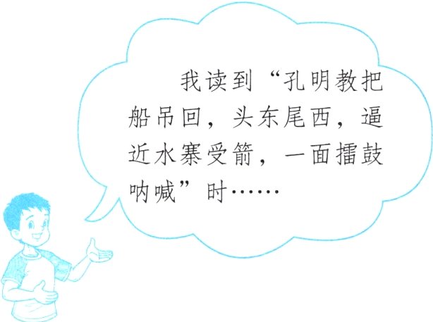 我读到“孔明教把船吊回,头东尾西,逼近水寨受箭,一面擂鼓呐喊”时……