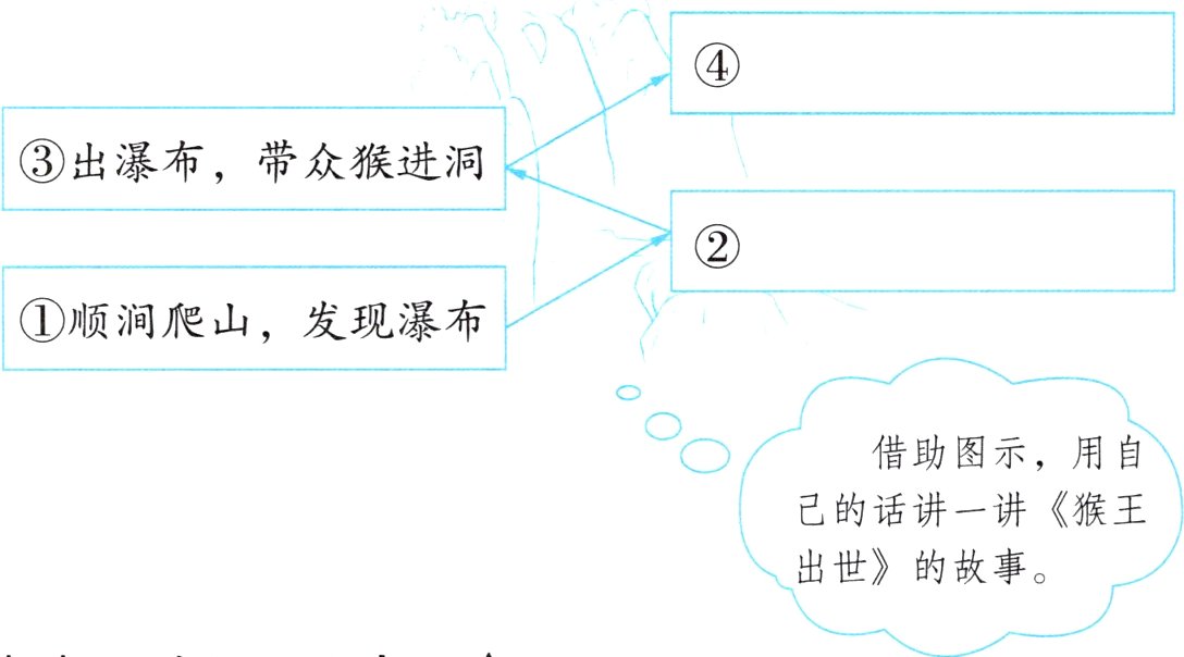 借助图示,用自己的话讲一讲《猴王出世》的故事。