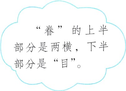 (“眷”的上半部分是两横,下半部分是“目”。)
