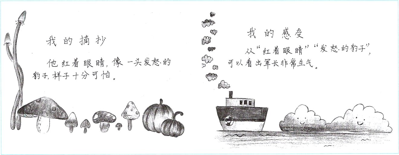 5. 读教科书第61、62页"阅读链接",摘抄描写人物动作、语言、神态的句子,并谈谈感受。