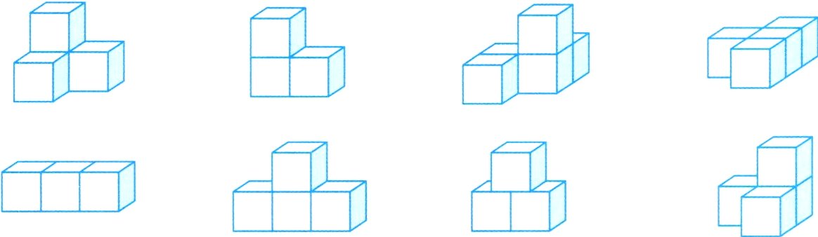 下面每个小正方体体积为1立方厘米,圈出体积超过3立方厘米的立体图形