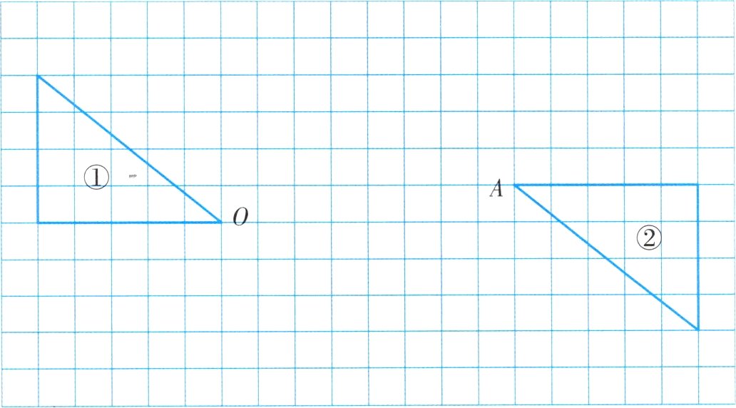 画出①号图形绕点O顺时针旋转90°后的图形。画出②号图形绕点“A”逆时针旋转90°后的图形