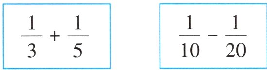 $\frac{1}{3}+\frac{1}{5}$ $\frac{1}{10}-\frac{1}{20}$