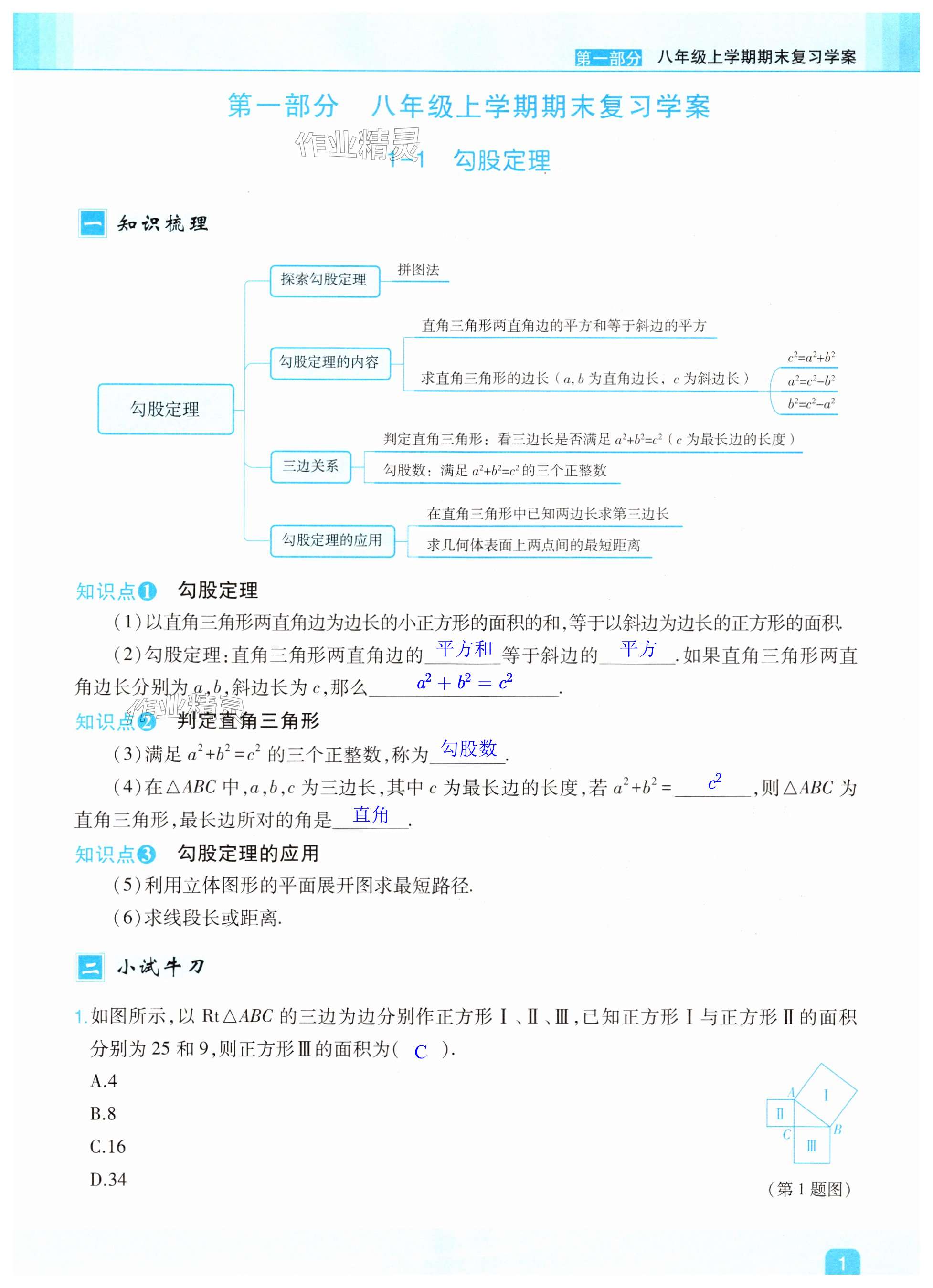 注:目前有些书本章节名称可能整理的还不是很完善,但都是按照顺序排列的,请同学们按照顺序仔细查找。练习册2025年智能作业与测评期末复习与假期作业八年级数学上册北师大版答案主要是用来给同学们做完题方便对答案用的,请勿直接抄袭。
