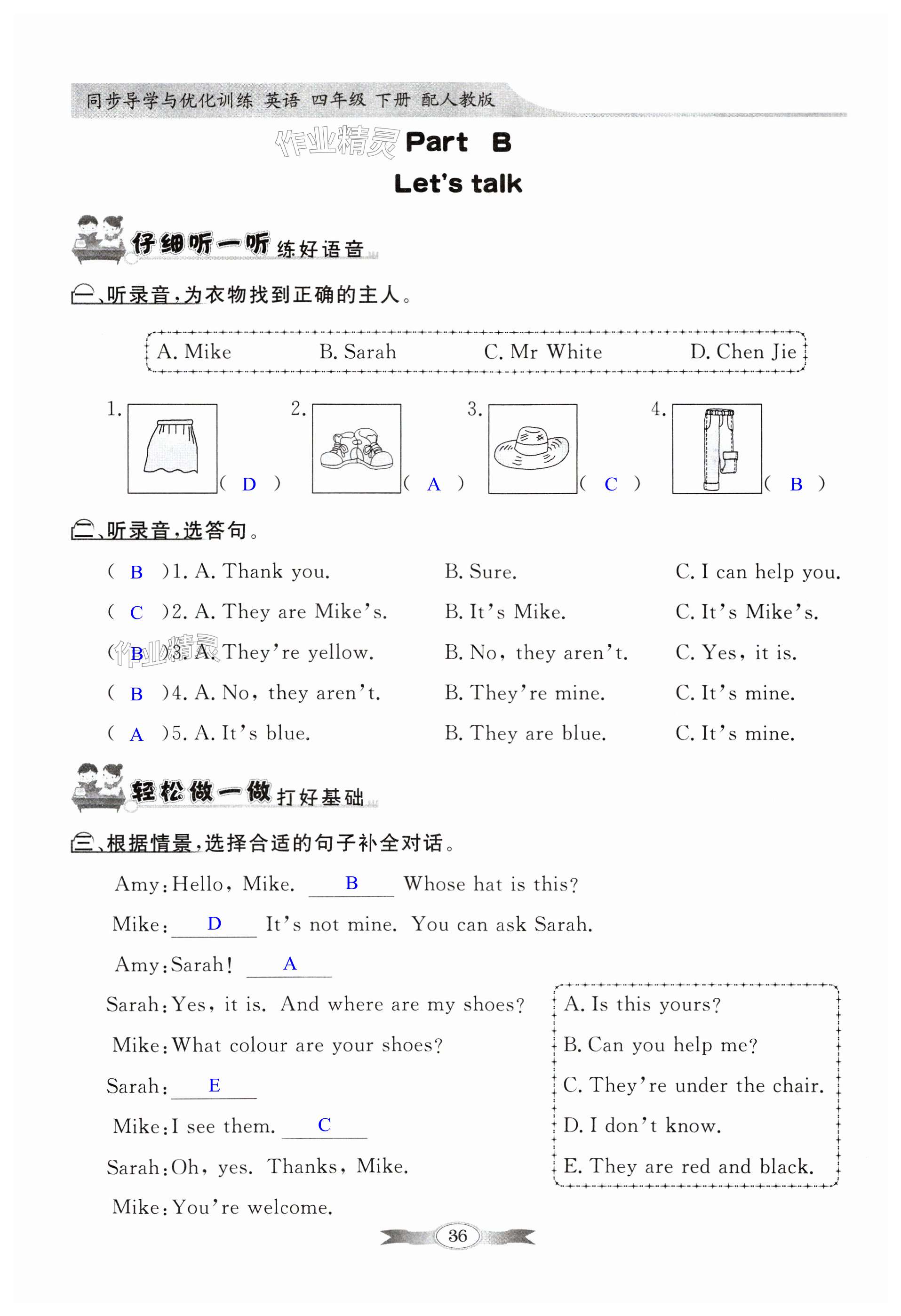 注:目前有些书本章节名称可能整理的还不是很完善,但都是按照顺序排列的,请同学们按照顺序仔细查找。练习册 2025年同步导学与优化训练四年级英语下册人教版 答案主要是用来给同学们做完题方便对答案用的,请勿直接抄袭。