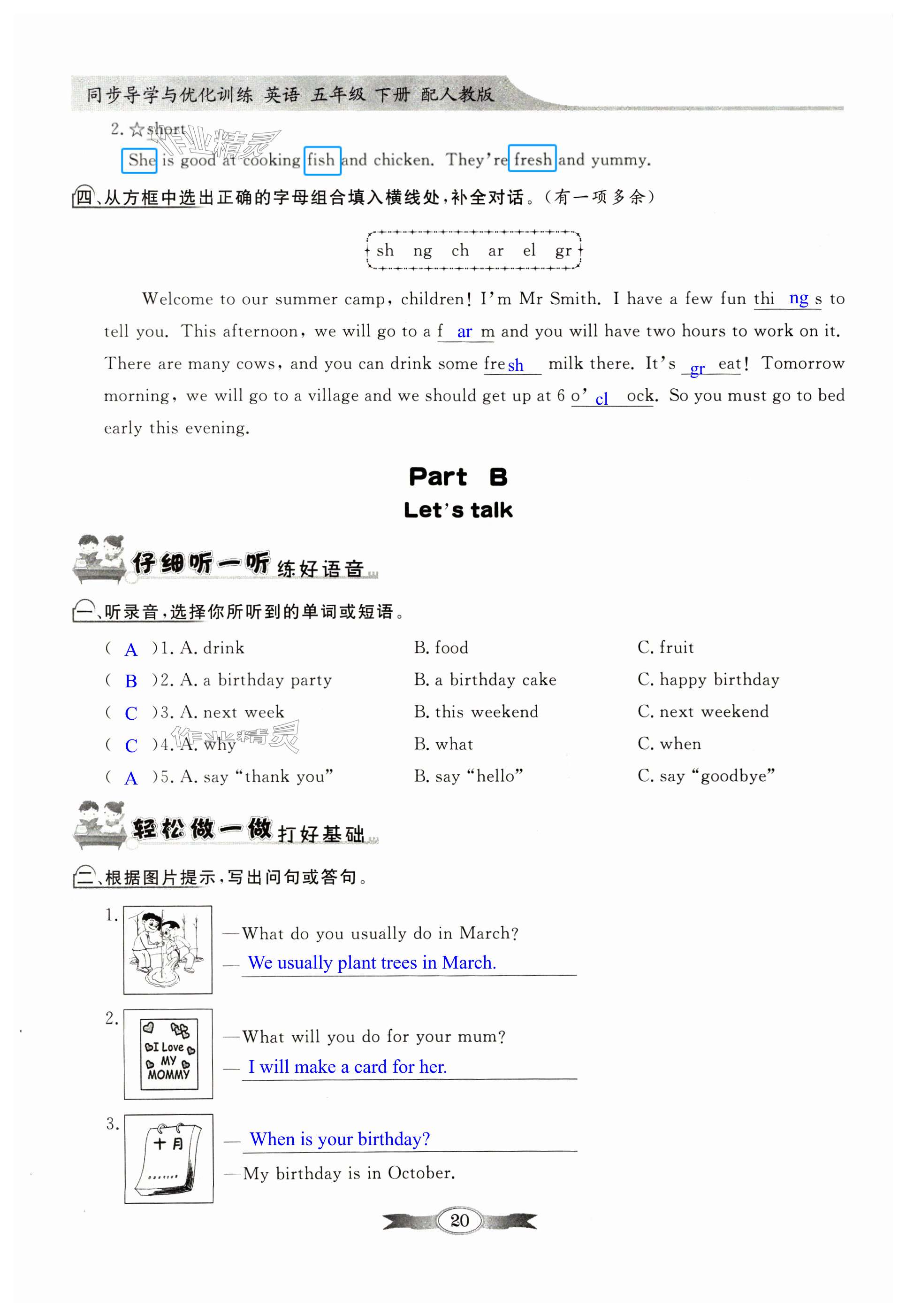 注:目前有些书本章节名称可能整理的还不是很完善,但都是按照顺序排列的,请同学们按照顺序仔细查找。练习册 2025年同步导学与优化训练五年级英语下册人教版 答案主要是用来给同学们做完题方便对答案用的,请勿直接抄袭。