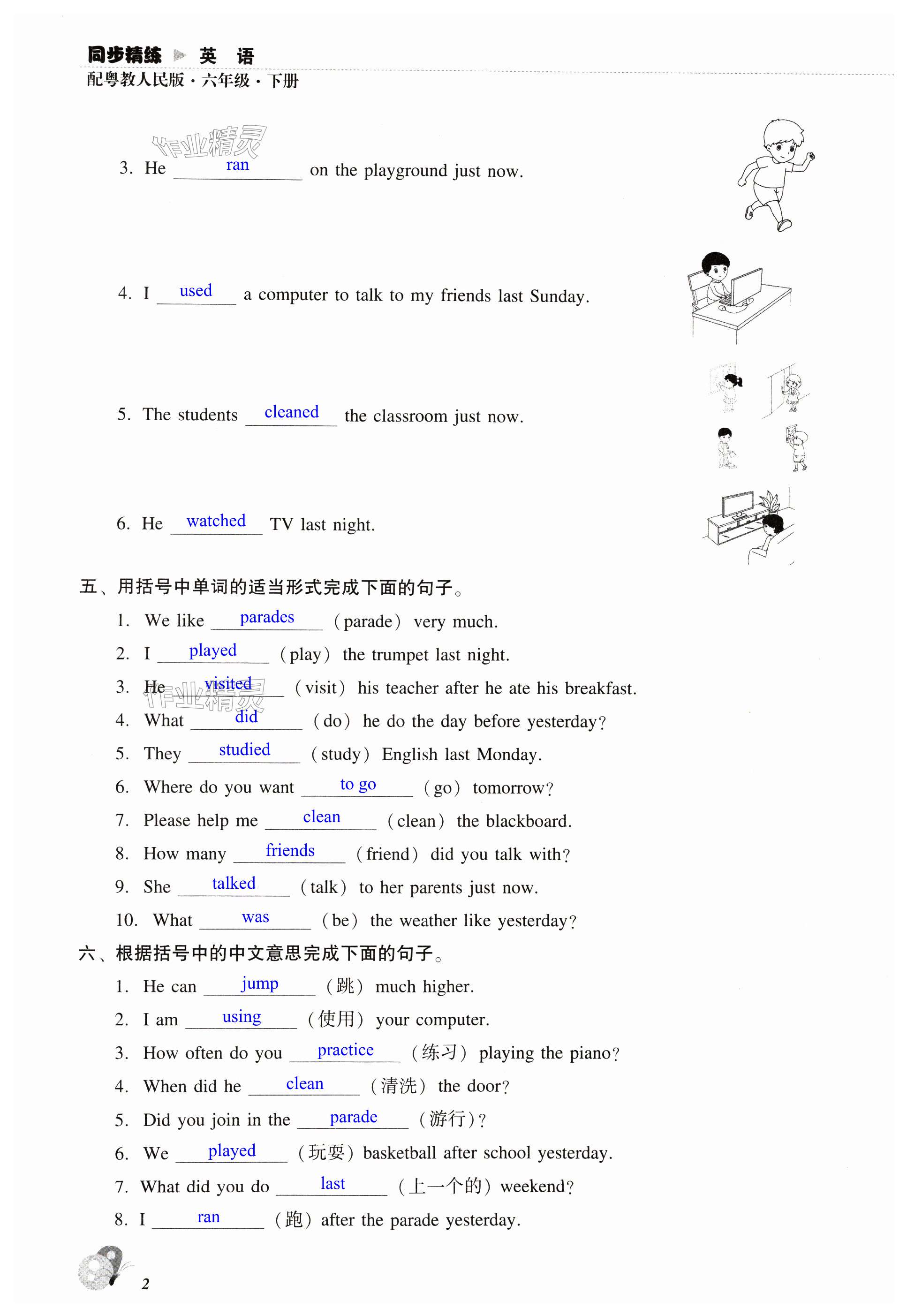 注:目前有些书本章节名称可能整理的还不是很完善,但都是按照顺序排列的,请同学们按照顺序仔细查找。练习册 2025年同步精练广东人民出版社六年级英语下册粤人版 答案主要是用来给同学们做完题方便对答案用的,请勿直接抄袭。