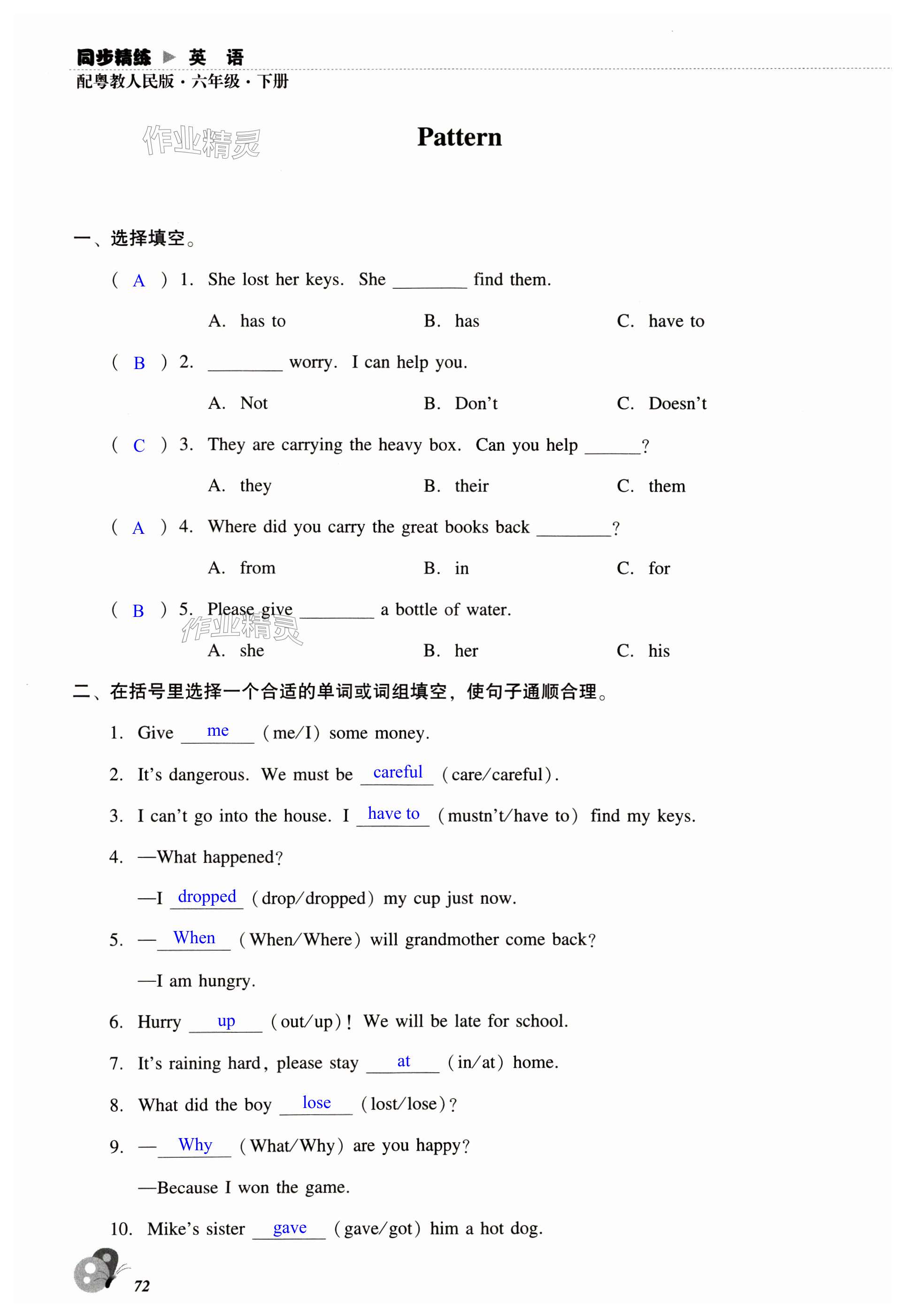 注:目前有些书本章节名称可能整理的还不是很完善,但都是按照顺序排列的,请同学们按照顺序仔细查找。练习册 2025年同步精练广东人民出版社六年级英语下册粤人版 答案主要是用来给同学们做完题方便对答案用的,请勿直接抄袭。