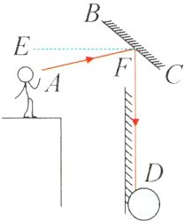 6 - 1 (跨物理·光的反射)老张想运用光的反射原理帮出远门的邻居照看点D处一只羊的情况.如图,他在BC处悬挂一面镜子,站在二楼观看,其视线AF与镜面BC的夹角∠AFB = 50°,此时他正好能通过镜子看到点D处羊的状况,根据光的反射原理可知∠AFB = ∠CFD,若FD与水平面EF垂直,则镜子倾斜的角度∠EFB = ________.