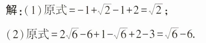 (2)原式$=3\sqrt{3}-3 + 2-\sqrt{3}-2\sqrt{3}+3\sqrt{2}=3\sqrt{2}-1$。