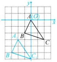 4 - 2 解:因为点P(x,y)平移后得到对应点P₁(x - 2,y - 3),所以平移规律是向左平移2个单位长度,再向下平移3个单位长度.以点A为原点建立平面直角坐标系,三角形A₁B₁C₁如图所示,则各个顶点的坐标为A₁(-2,-3),B₁(-3,-5),C₁(0,-6).