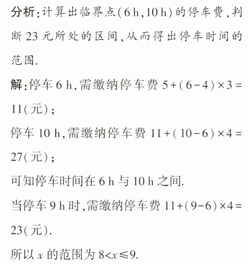 李先生在该停车场停车一次后缴纳停车费23元,设他在该停车场停车xh,用不等式表示x的范围。