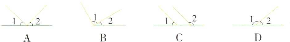 例1 下列图形中,∠1与∠2互为邻补角的是( )