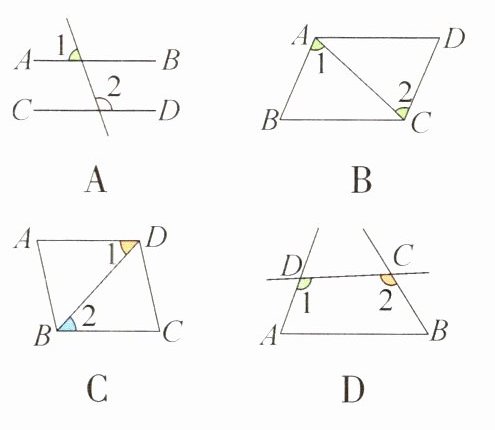 形中,由∠1 = ∠2 能判定