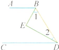 例3如图,∠ABD的平分线与∠BDC的平分线交于点E,∠1+∠2=90°,那么AB与CD吗?为什么?