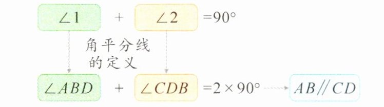∴∠ABD+∠CDB=2∠1+2∠2=2(∠1+∠2)=2×90°=