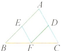 例1 如图,D,E,F分别是三角形ABC三条边上的点,EF//AC,DF//AB,∠B=45°,∠C=60°,则∠EFD等于( )