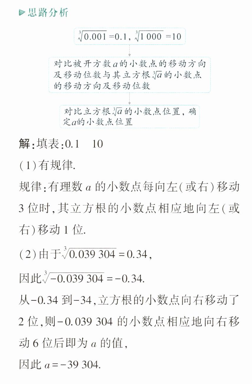 (1)有理数a的小数点位置移动和它的立方根的小数点位置移动有无规律?若有规律,请写出它的移动规律。
