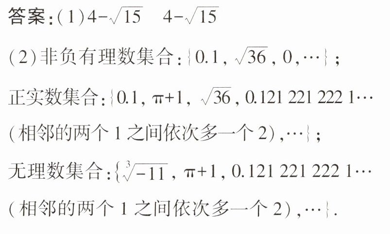 例3 (1)实数√15 -4的绝对值是_______,相反数是_______.