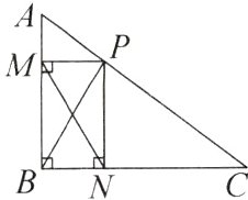 7 - 1 [宝鸡凤翔区期末]如图,P是Rt△ABC中斜边AC上一动点(不与点A,C重合),分别作PM ⊥ AB于点M,作PN ⊥ BC于点N,连接BP,MN. 若AB = 6,BC = 8,当点P运动时,MN的长最小是( )
