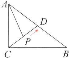 7-1 [转化思想]如图,在$\triangle ABC$中,$AC = 3$,$BC = 4$,$AB = 5$,$D$是$AB$的中点,点$P$从点$C$开始以每秒1个单位长度的速度沿$CD$方向向终点$D$运动.若$\triangle APD$的面积为$y$,点$P$的运动时间为$x$ s.