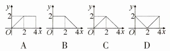 7-1 ★★☆如图,正方形ABCD的边长为2 cm,动点P从点A出发,在正方形ABCD的边上沿A→B→C的方向运动到点C停止.设点P的运动路程为x(单位:cm),则下列能表示△ADP的面积y(单位:$cm^{2}$)与x之间的函数关系的图象是( )