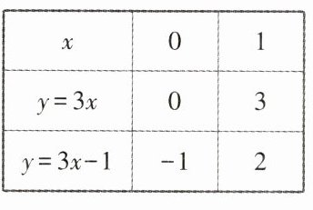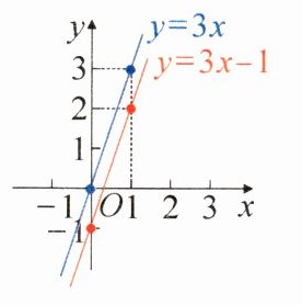 例1 在同一个平面直角坐标系中画出函数$y = 3x$与$y = 3x - 1$的图象,并指出这两个函数的图象有什么关系.