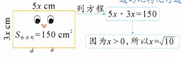 例5 ★★☆ [方程思想]一个长方形的面积为$150\ cm^{2}$,它的长和宽之比为$5:3$。这个长方形的长为________$cm$。