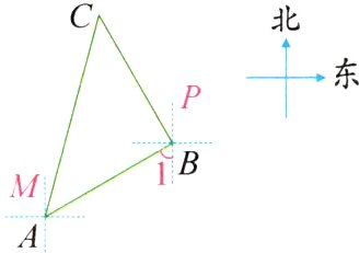 解:(1)如图,由题意可得$AB = BC = 10$km,$∠MAB = 60^{\circ}$,$∠PBC = 30^{\circ}$。