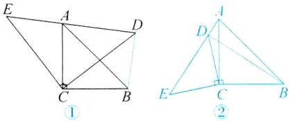 6-1 如图,$△ACB$与$△ECD$都是等腰直角三角形,直角顶点都为C,$△ACB$的顶点A在$△ECD$的斜边所在的射线ED上。
