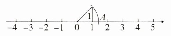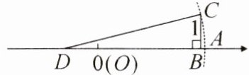 1-2 如图,点$B$,$D$在数轴上,$O$是原点,$OB = 3$,$OD = BC = 1$,$\angle OBC = 90^{\circ}$,以点$D$为圆心,以$DC$长为半径画弧,交数轴原点右侧的部分于点$A$,则点$A$表示的实数是________。