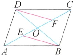 例3如图,AC,BD相交于点O,AB//CD,AD//BC,E,F分别是OB,OD的中点.求证:四边形AFCE是平行四边形.