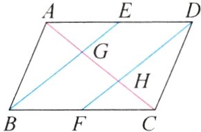 举一反三训练5 - 1如图,在▱$ABCD$中,$E,F$分别为边$AD,BC$的中点,对角线$AC$分别交$BE,DF$于点$G,H$.求证: