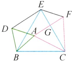 6 - 1如图,在$BC$的同侧分别作等边三角形$ABD$、等边三角形$BCE$、等边三角形$ACF$,$AF$与$CE$交于点$G$,连接$DE,EF$.求证: