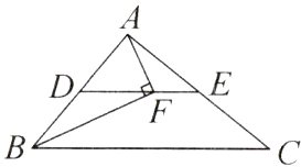 8 - 1 [南充期末]如图,DE是△ABC的中位线,直角∠AFB的顶点在DE上,AB = 5,BC = 8,则EF的长为( )