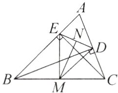 8 - 3 [广州白云区期中]如图,在△ABC中,BD⊥AC于点D,CE⊥AB于点E,M,N分别是BC,DE的中点.