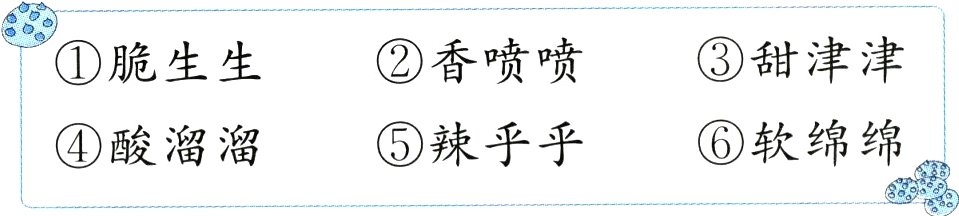 2. 下面的美食应该是什么味道呢?选择填空。(填序号)(6分)