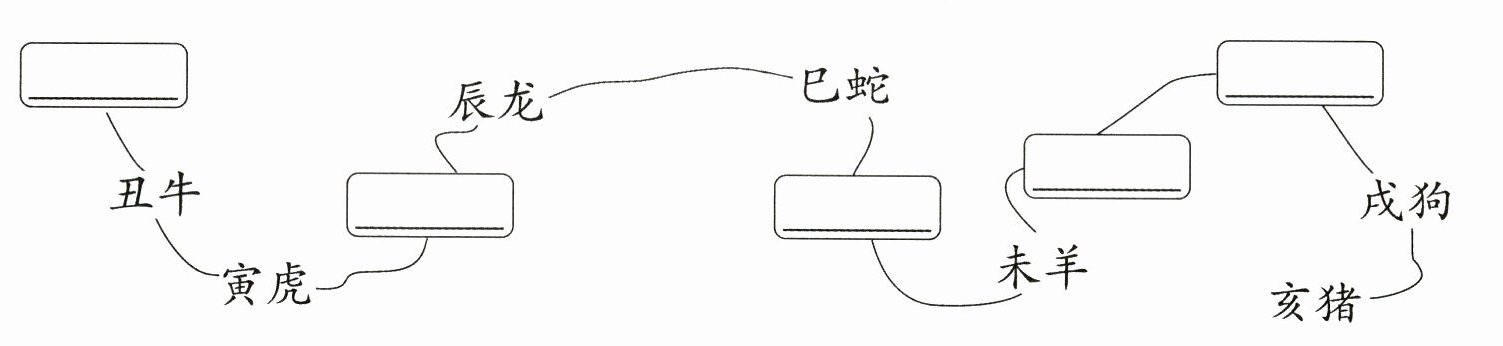 1. 了解生肖。把下面的生肖按顺序放到合适的位置。(填序号)(5分)