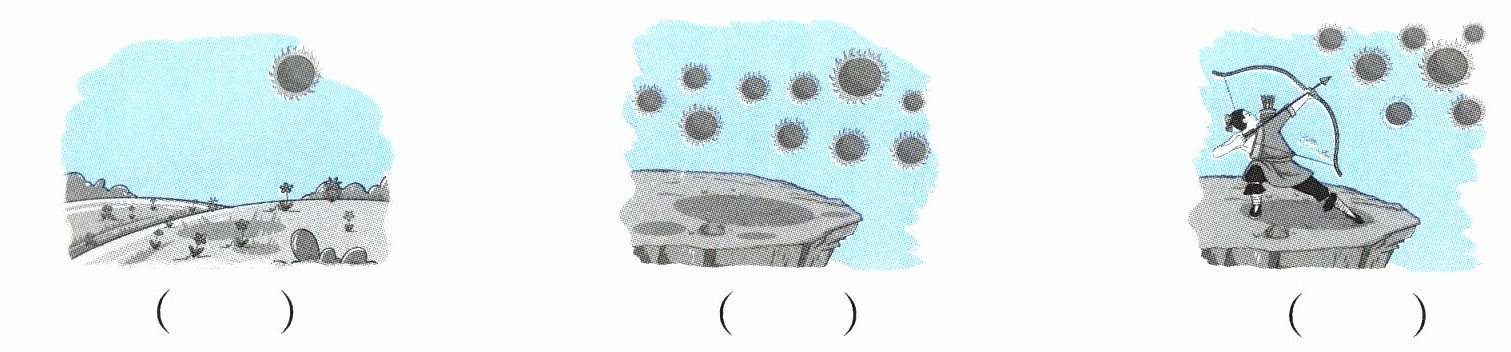 2. 回忆《羿射九日》的故事,给下列图片排序。(3分)