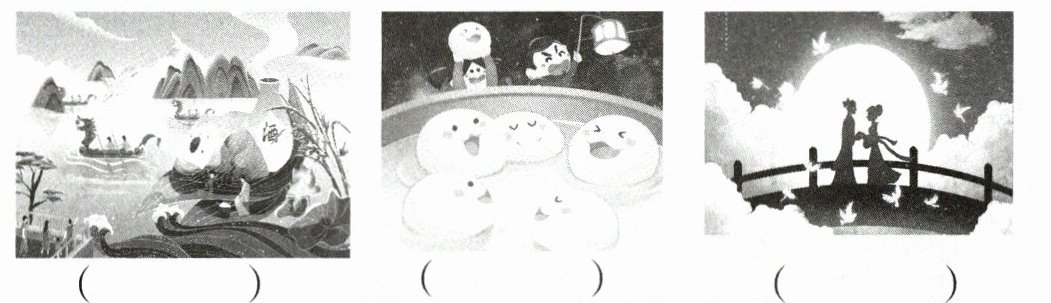 1. 把节日名称写在相应的图片下面的括号内。