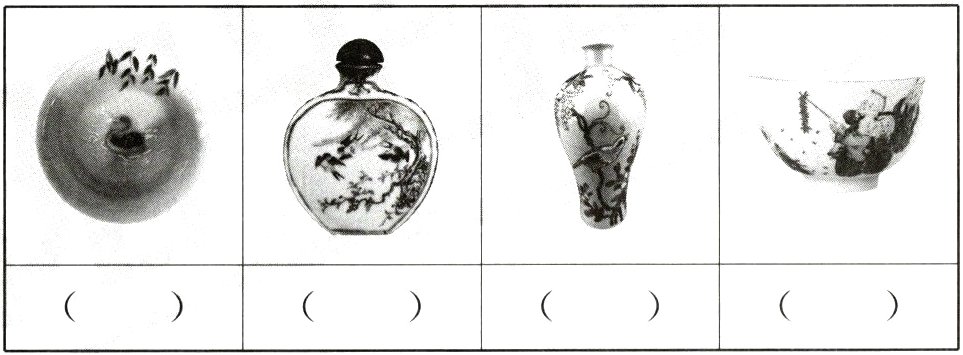 2. 妈妈搜集了一些精美瓷器的图片,阳阳一下子就把上面的图案和学过的古诗联系了起来。先把诗句补充完整,再把诗句的序号填到相应的括号里。(12分)