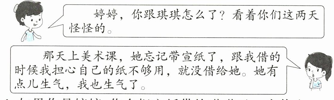 1. 如果你是婷婷,你会把宣纸借给琪琪吗?为什么?