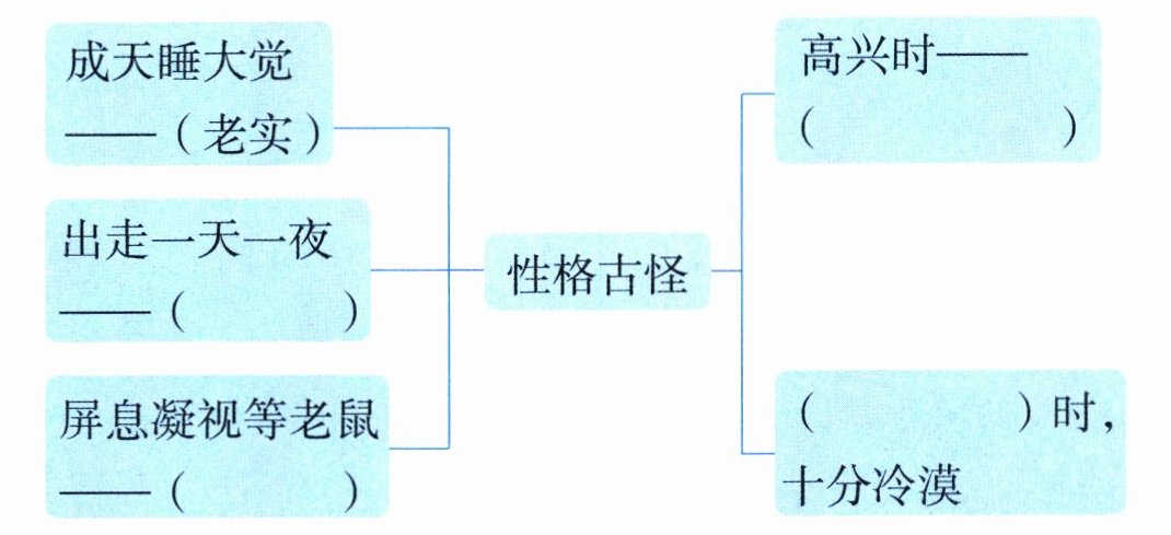 1.(新题型)作者从哪几个方面表现了猫古怪的性格?照样子填一填。